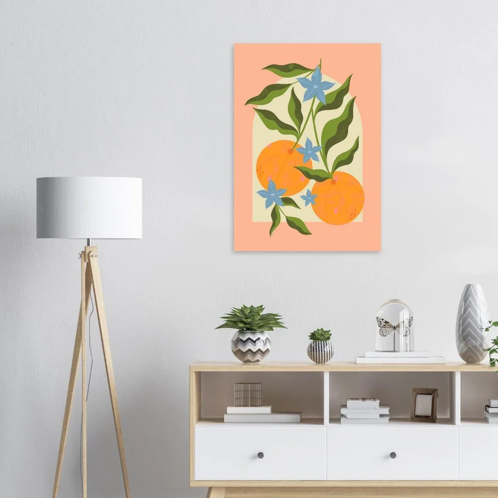 Elevate your space with this Orange Branch Art Print. Featuring delicate oranges set against a soft peach backdrop, this artwork adds a touch of elegance to any room. Printed on luxurious, heavyweight 200 gsm matte paper with a smooth, non-reflective finish, it offers a premium feel. Available in sizes A4, A3, A2, and A1, it's perfect for any wall space. Prints are sustainably sourced (FSC-certified paper) and printed on demand. Fulfilled in the UK, shipping is available worldwide.